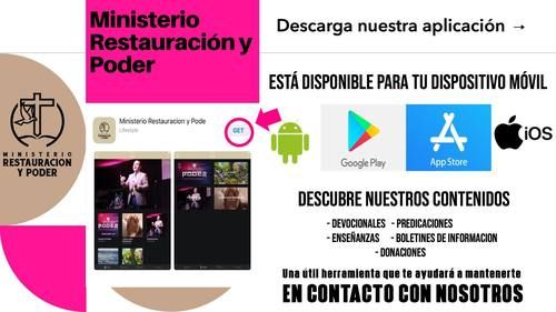 Puedes también descargar la app de MINISTERIO RESTAURACION Y PODER en tu teléfono, y hacer tu aportación desde tu teléfono.